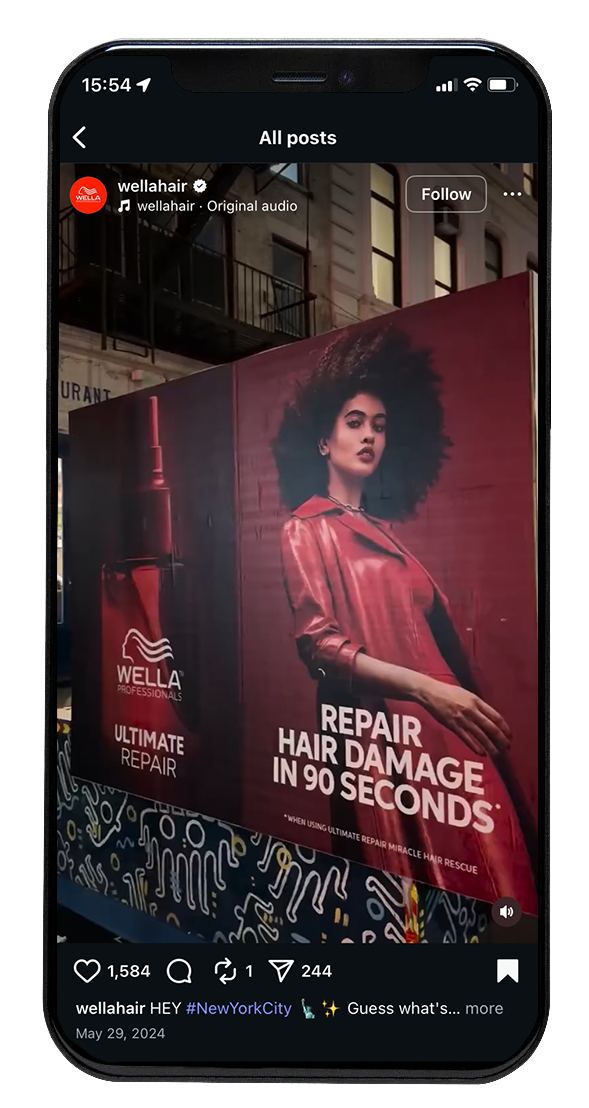 For the launch of Wella Ultimate Repair, we wanted our campaign to embody what it means and feels like to be legendary— to be confident, bold, fierce and knowledgeable. In both our campaign and creative executions, this feeling comes to life with the use of bold reds, tight shots, and visible hair results across TV, digital, and social.